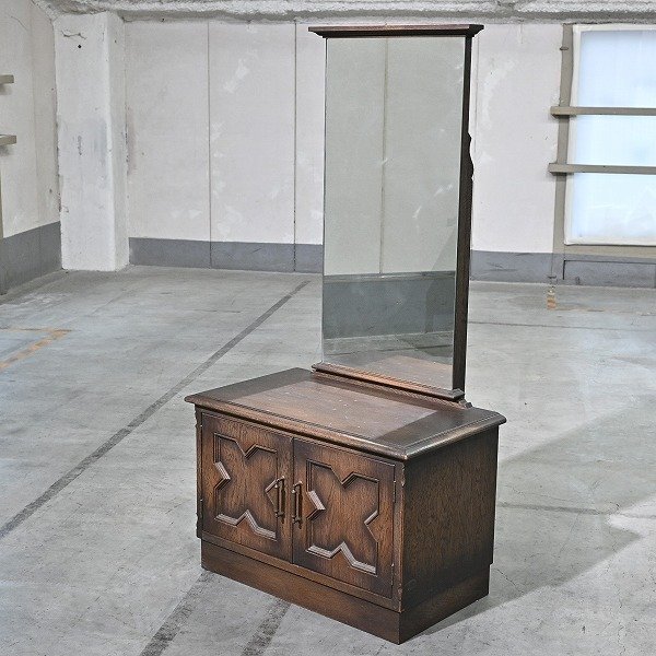 > 永田良介商店 鏡台 オーク材 ミラー 収納棚 クラシカル カントリー 優雅 幾何学模様 姿見 寝室 リビング 書斎_松本民芸 北海道 九州