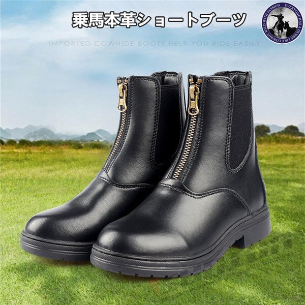 - 乗馬用品 本革 乗馬ブーツ 牛革 ブーツ ショットブーツ ブラック 馬具 タウンユースブーツ 乗馬用 乗馬靴 男女兼用 ジュニア