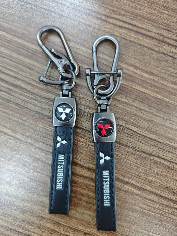 - ミツビシ(MITSUBISHI)車用 キーホルダー キーリング レザー ロゴ エンボス加工 アクセサリー カスタム パーツ 1P