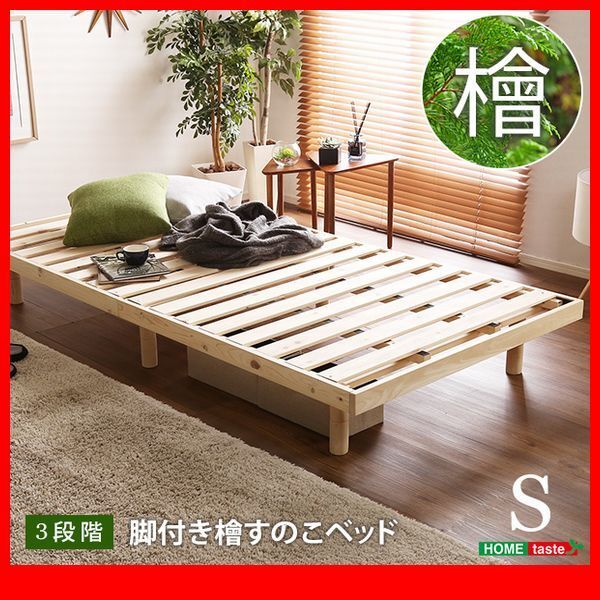 - すのこベッド★3段階高さ調整 総ひのき脚付きすのこベッド フレームのみ シングル/国産檜無垢材 通気性抜群 低ホルムアルデヒド/特価/zz