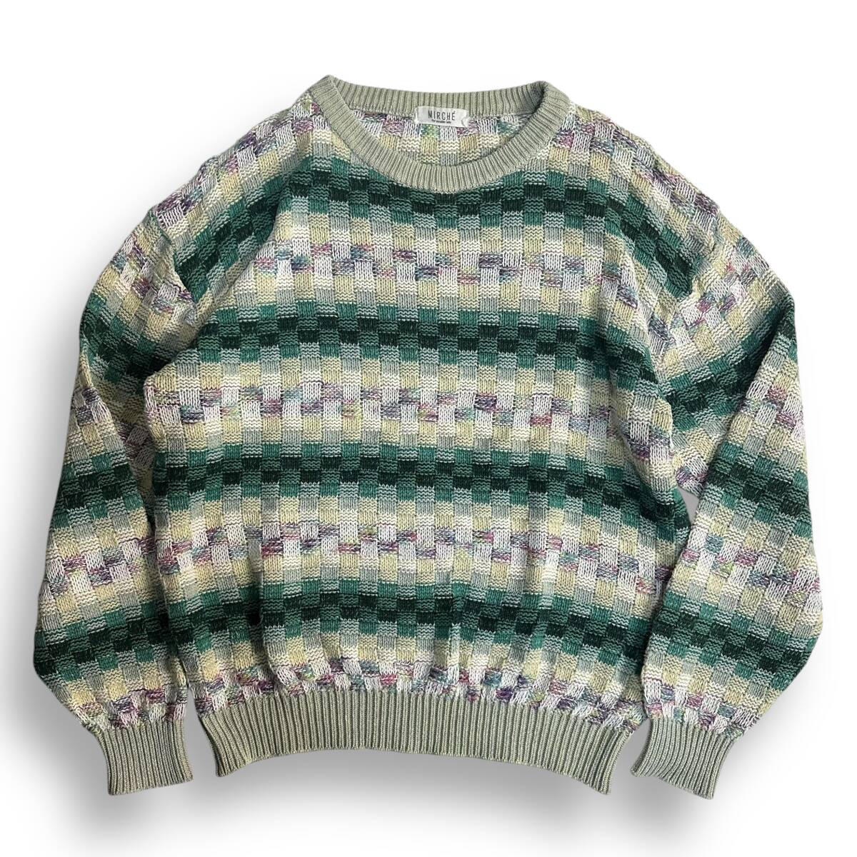 - お洒落【MIRCHE】VINTAGE 80s 90s グラデーションボーダー ビンテージクルーネックニット コットン&アクリル 日本製 古着ミックス