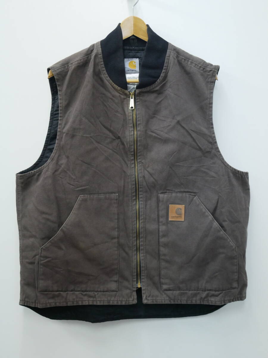 > 37W カーハート ベスト ダック Carhartt ワーク メキシコ製 V47 DKB ブラウン XLサイズ ビンテージUSA