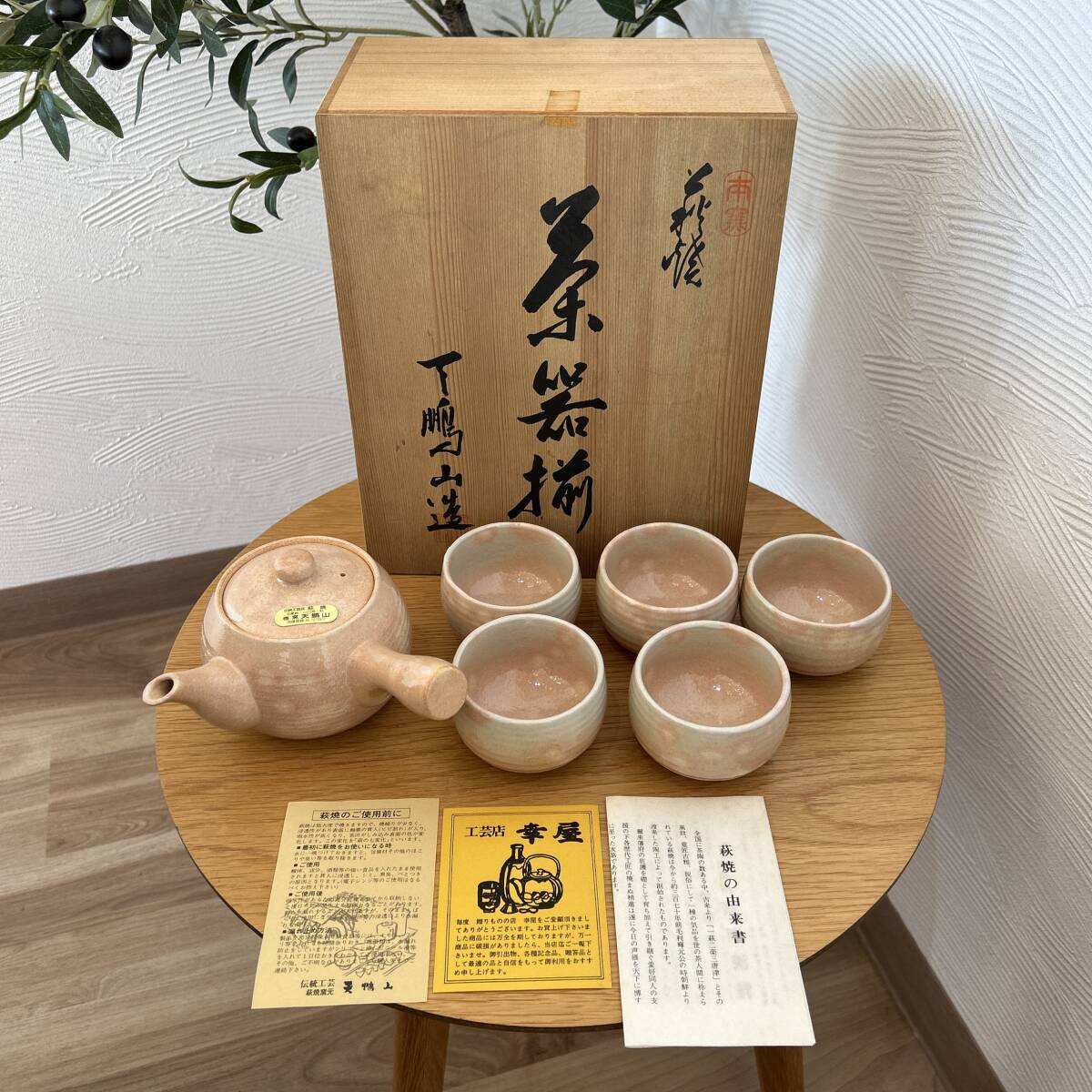 - *9823 萩焼 天鵬山 御本手茶器揃 (5碗) 共箱 長期保管品