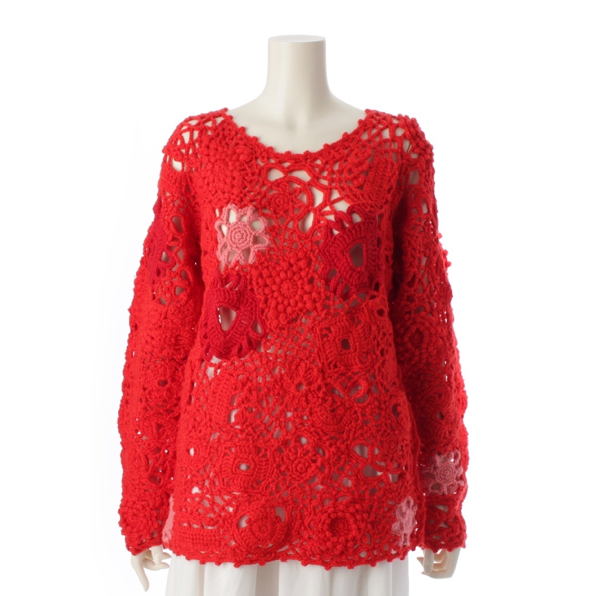 - ヨウジヤマモト 80s ウール かぎ編み フラワー ローゲージ ケーブルニット セーター レッド M【中古】