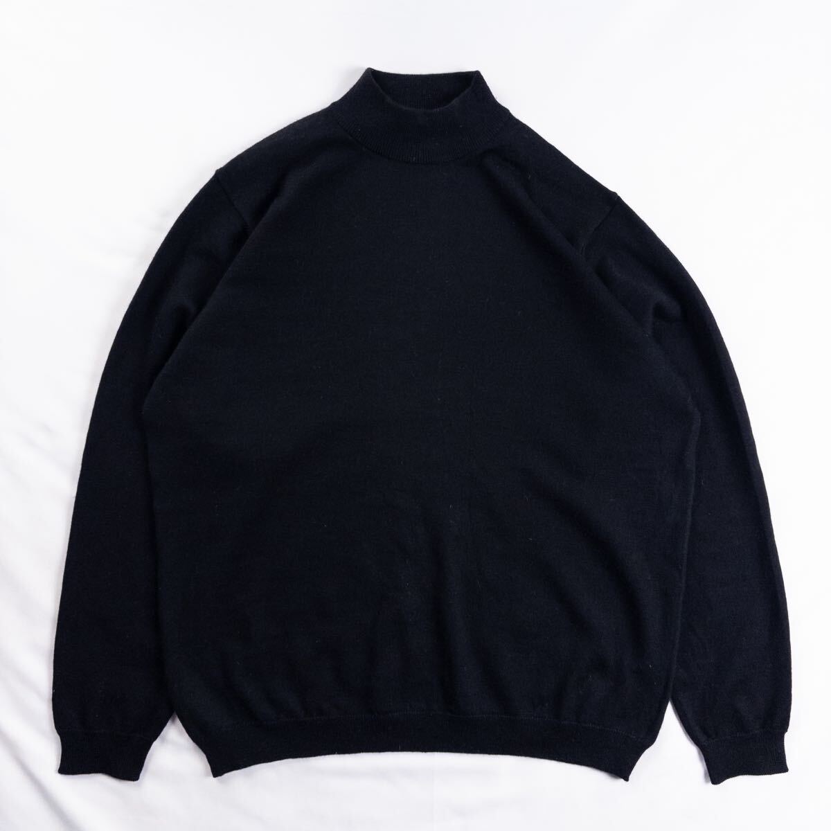- Euro Vintage Unknown ウール50% アクリル50% モックネック 単色 プレーン ブラック 黒 トラッド クラシック ハイゲージ デザインニット