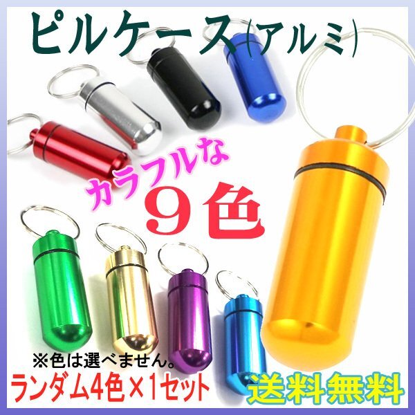 - 送料無料 ピルケース (アルミ) / ランダム4色×1セット タブレットケース ピル アルミ 薬入れ 薬箱 携帯 旅行 散歩 登山 出先 旅行 常備薬