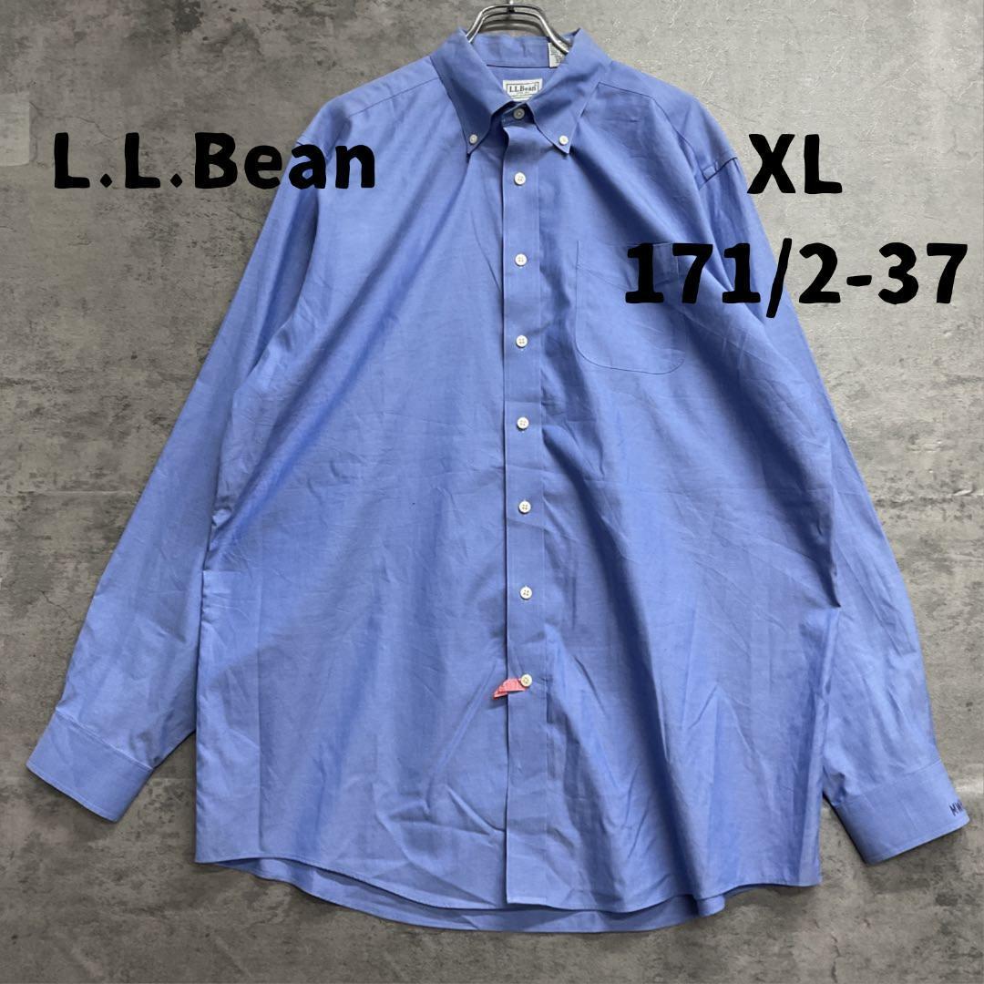 - エルエルビーン 青無地 長袖ボタンダウンシャツ Lサイズ USA古着【6040】