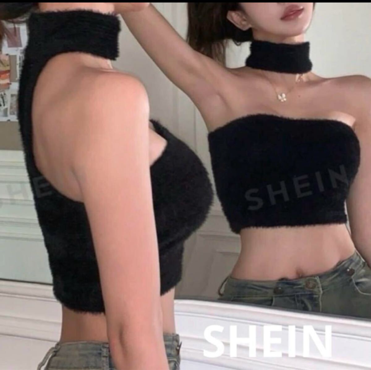 - SHEIN ふわふわファー Dazy S シーイン ブラック 黒 ベアトップス チューブトップ ハイネックトップス ハロウィン ギャル シーイン GRL