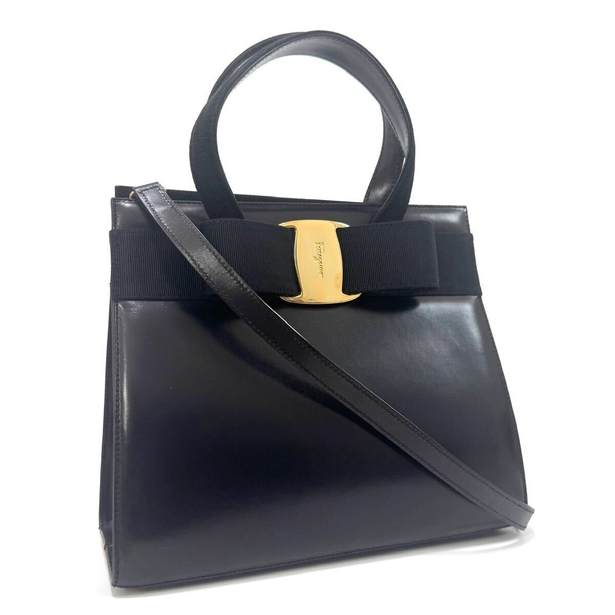- フェラガモ 2way ハンドバッグ ショルダーバッグ 斜め掛け鞄 ヴァラ リボン りぼん ブラック 黒 ゴールド レザー 革 BA21 4178 Ferragamo