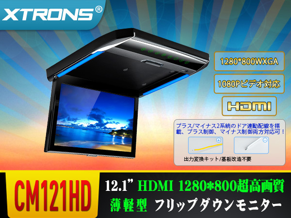 - CM121HD△12.1インチ フリップダウンモニター 1280x800 解像度 超薄 HDMI対応 1080Pビデオ 外部入力 ドア連動 開閉120度 USB・SD 1年保証