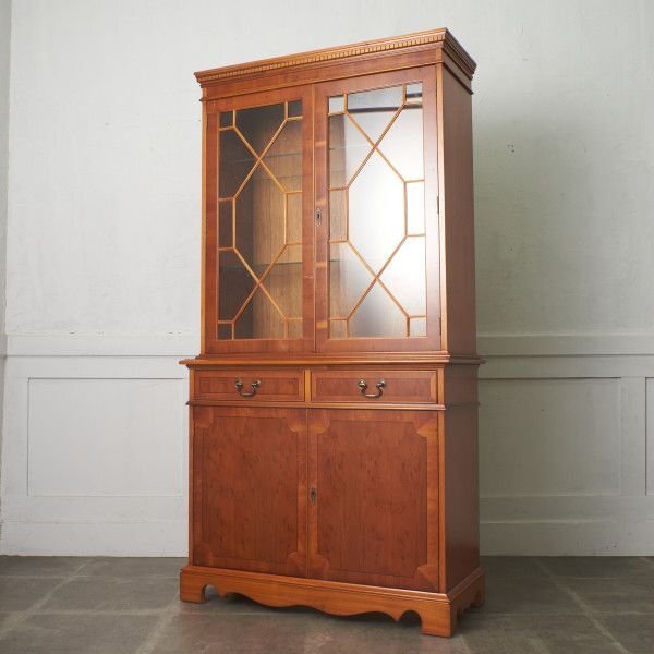 - IZ94665N★英国 エドワーディアン ブックケース 木製 イチイ 飾り棚 本棚 書棚 ガラス キャビネット アンティーク スタイル イギリス 鍵付