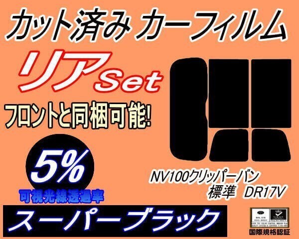 > カーフィルム スーパーブラック カット済み リアセット NV100 クリッパーバン 標準 DR17V (s) 標準ルーフ ガラスフィルム リヤセット