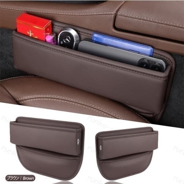 - プリウス 30系 前期 後期 車のシート 隙間ボックス左右2個 センター隙間埋め レザー 落下防止 小物入れ ブラウン(no cup)