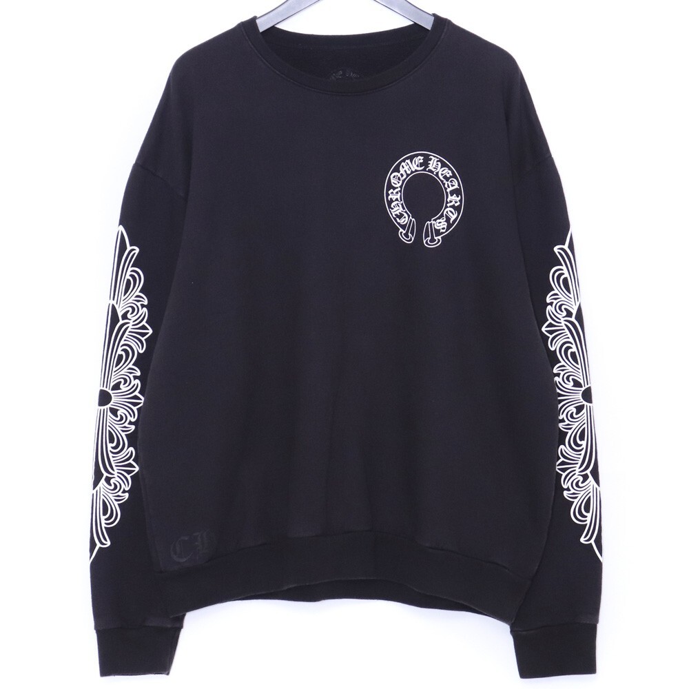 - CHROME HEARTS ホースシュー&フローラルクロス スウェット トレーナー Mサイズ ブラック クロムハーツ クルーネック HORSE SHOE CREW NECK