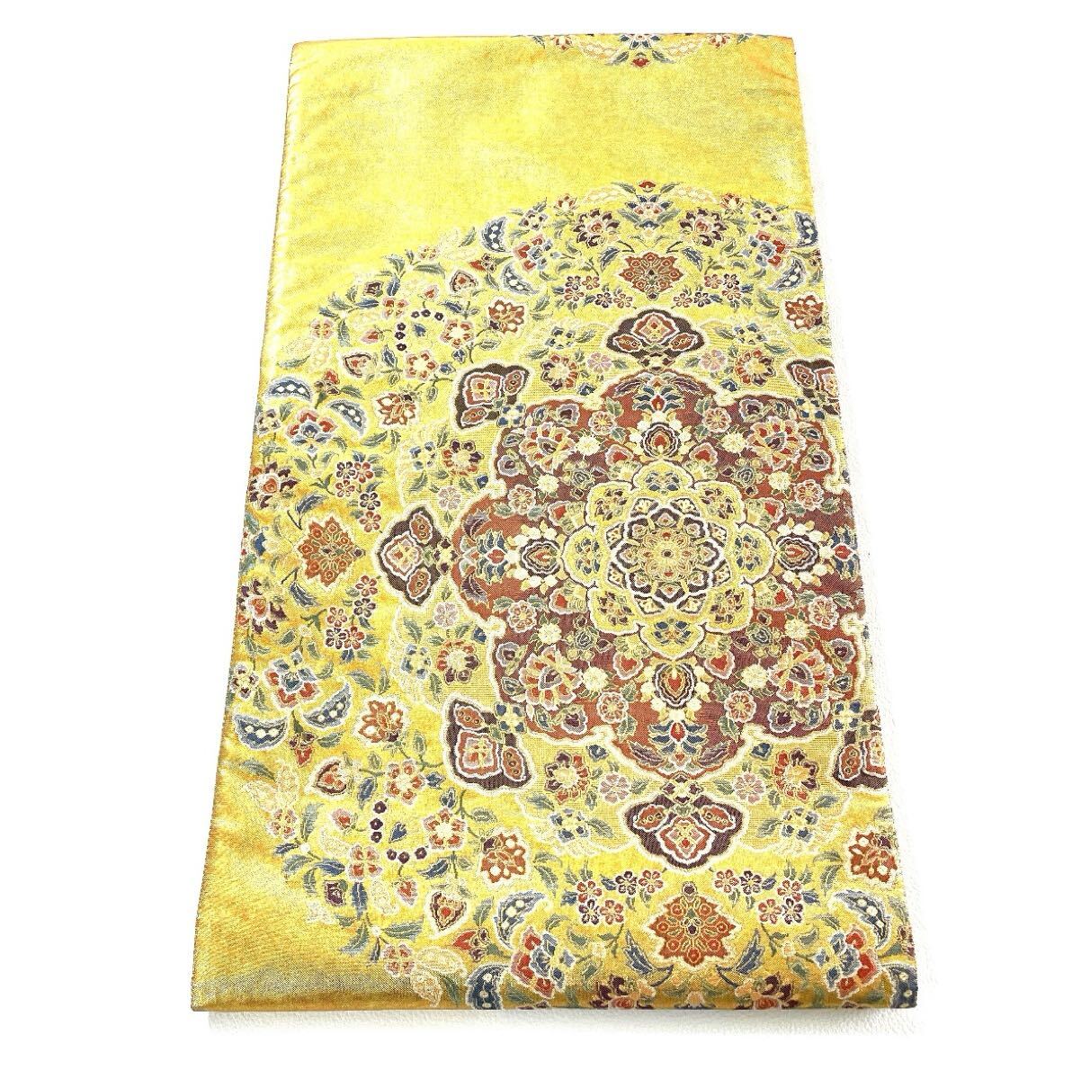 - 帯85 細密織 綴引箔 更紗大華文 高級 正絹 六通 袋帯 大花文 fkmddegb