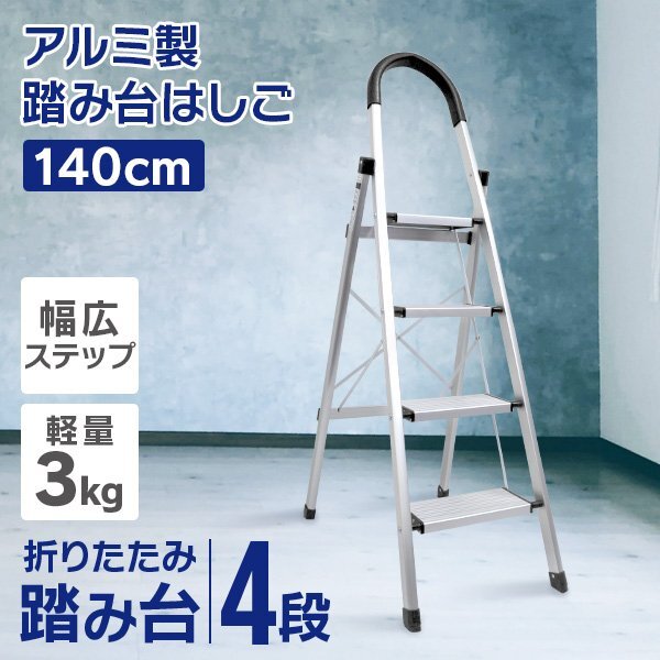 - 【ブラック】新品未使用 アルミ製脚立 4段 軽量 はしご 踏み台 ステップ台 脚立 折りたたみ ステップラダー 掃除 洗車 作業台 剪定 DIY