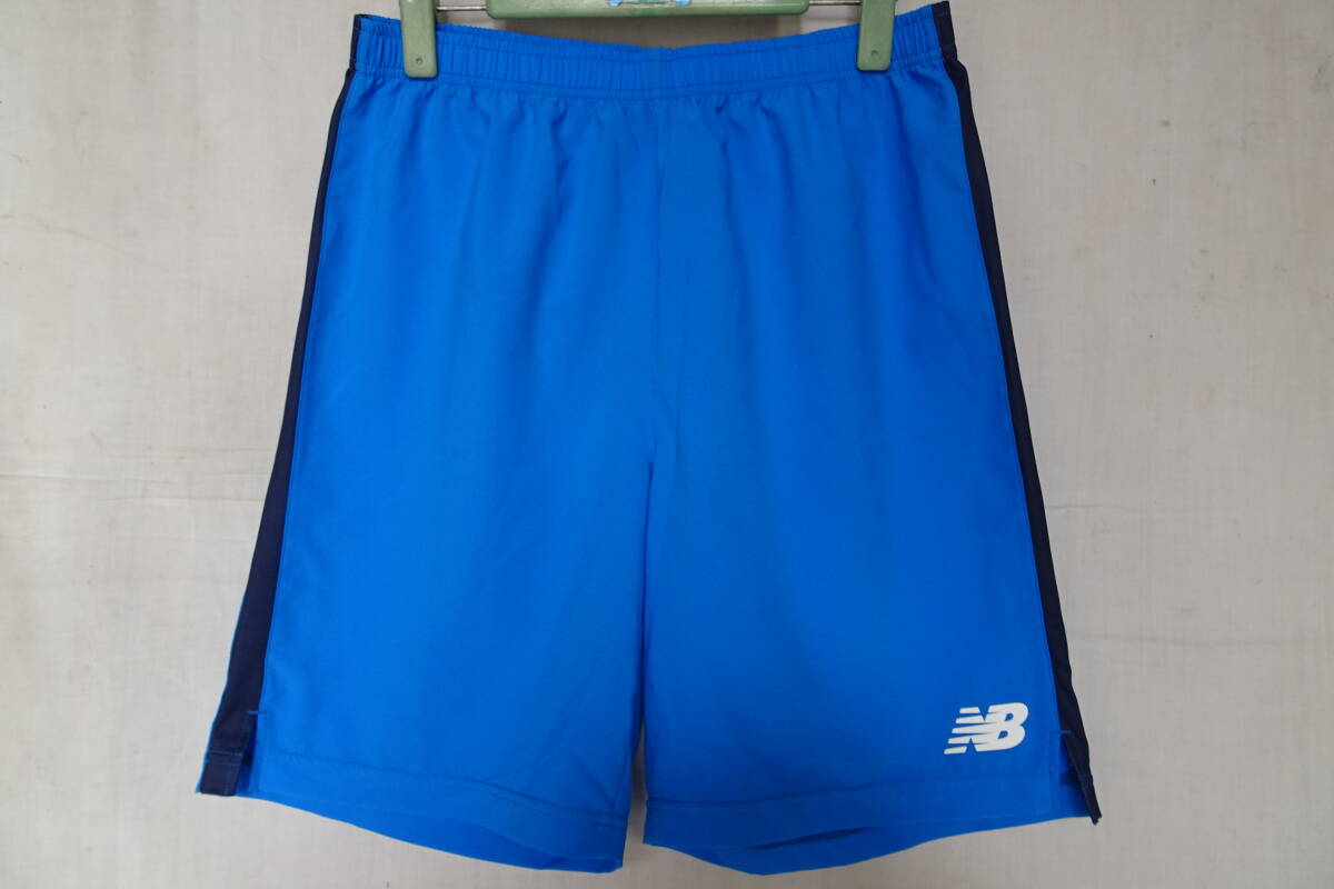 - new balance/ニューバランス/ショートパンツ/薄手/速乾性/ひざ上丈/脇紺ライン切替/裾サイドスリット/スポーツ/青/ブルー/Lサイズ(10/9R7)
