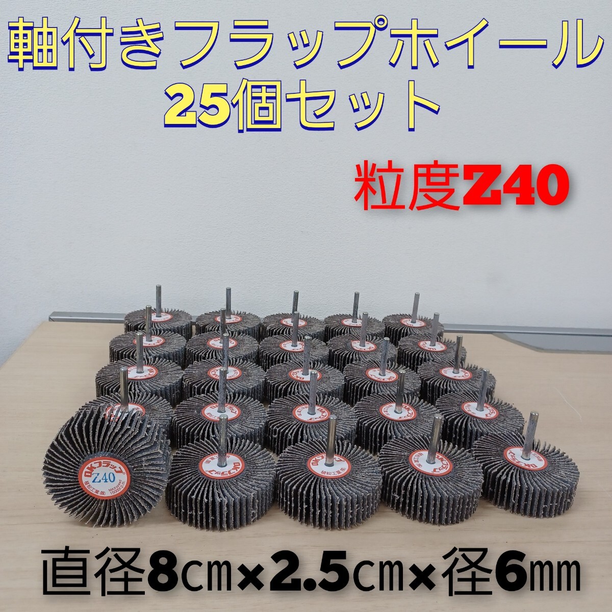 - 石18)軸付きフラップホイール 25個セット 植松工業 粒度Z40 フラップホイール グラインダー 研磨 研削 工具 251009(G奥