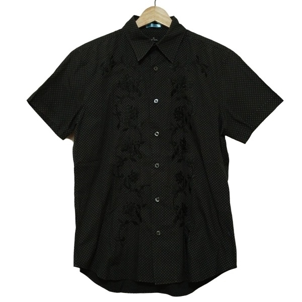 > ポールスミス PaulSmith 半袖シャツ サイズM - 黒×白 メンズ フラワー(花)刺繍/ドット柄 美品 トップス