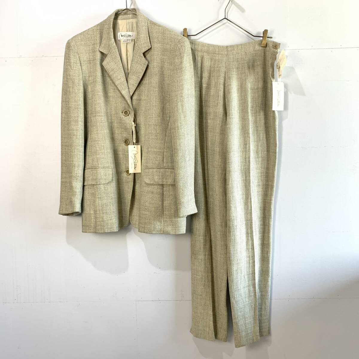 > ☆未使用 Vintage イタリア製 Mori Castello 92,000円 セットアップ 上下 リネン混 麻 ジャケット パンツ グレー系【送料一律/同梱可能】K