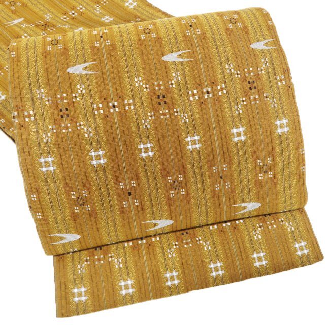 - 袋帯 中古 リサイクル 正絹 カジュアル 仕立て上がり 六通 琉球絣模様 狐色 多色 きもの北條 A1284-10