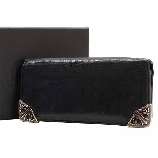 - 送料無料 本物 Chrome Hearts クロムハーツ シングルフォールドウォレット レザー×シルバー ブラック 長財布 メンズ フローラルチップ 革