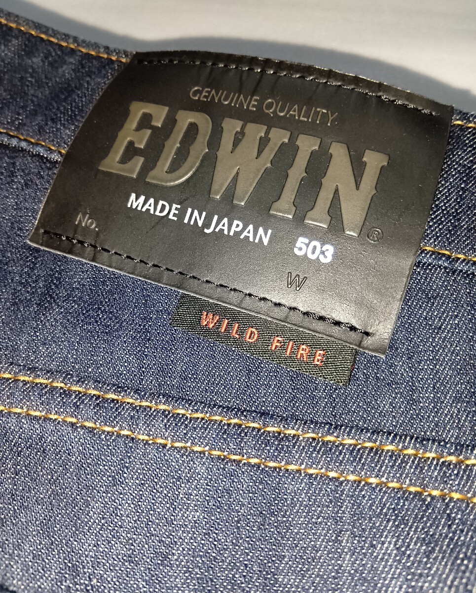 > ☆EDWIN 503 WILD FIRE W32インディゴブルー濃紺ネイビー ブルー デニム裏地柄パンツ長ズボン ボトムス日本製ジーパン エドウィン ジーンズ
