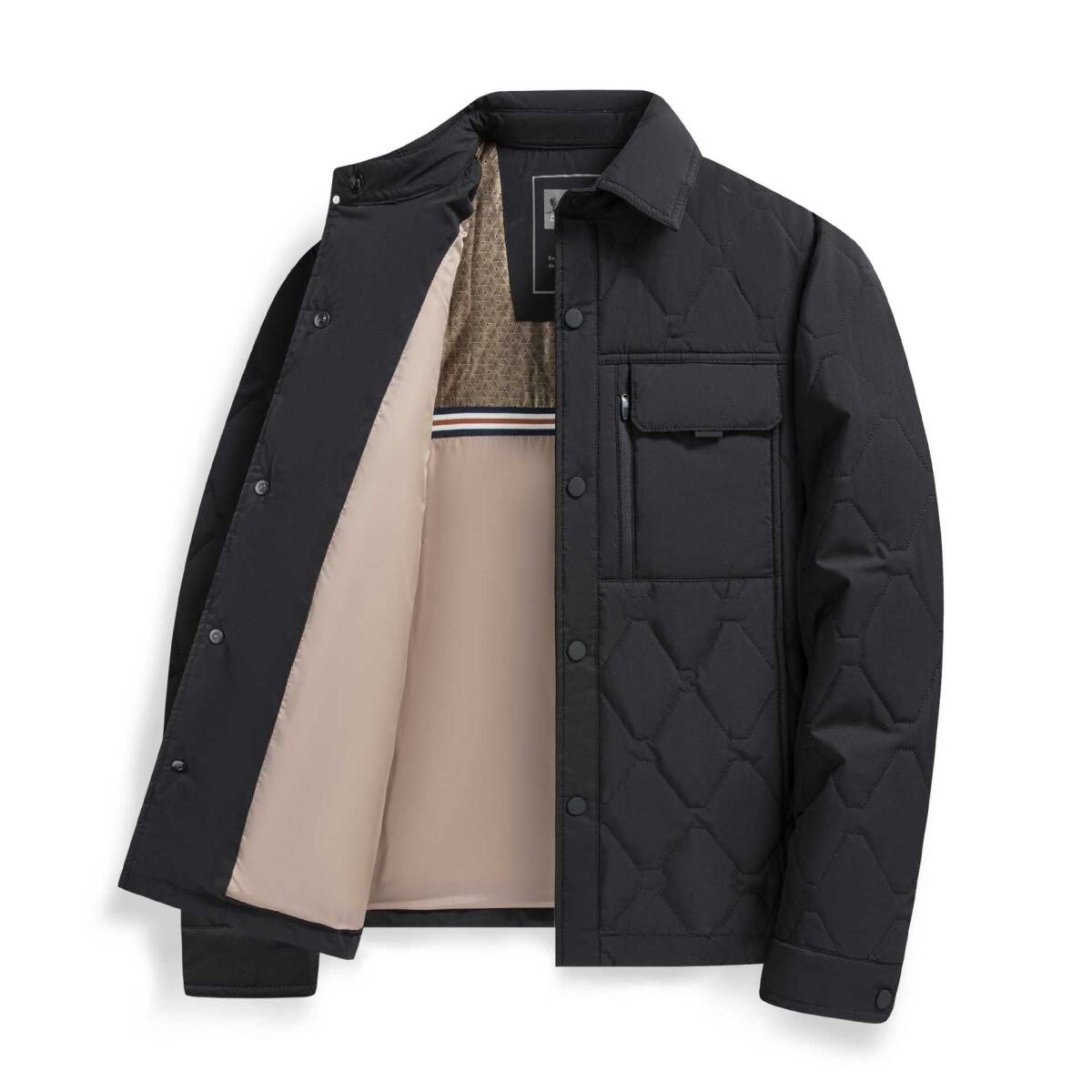 - 中綿ジャケット ショートコート メンズ シャツジャケット シャツ風ジャケット 紳士 暖か コート【CP8681B137M65】黒色 4XL