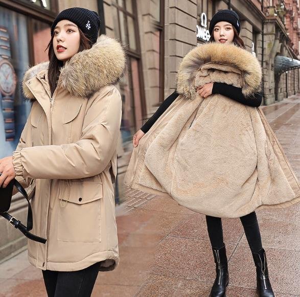 - LHK944★おしゃれ 裏起毛 トレンチコート レディース アウター 防寒着フード付き ファー 体型カーバー 綿コート かわいい