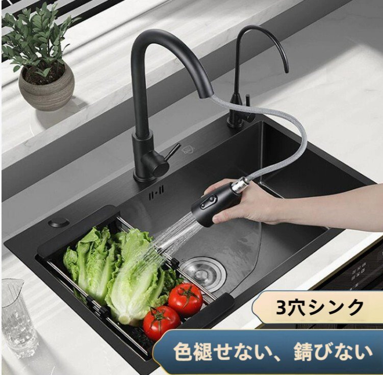 - ナノブラックステンレスシンク大単槽家庭用キッチン流し流し洗面器セットです