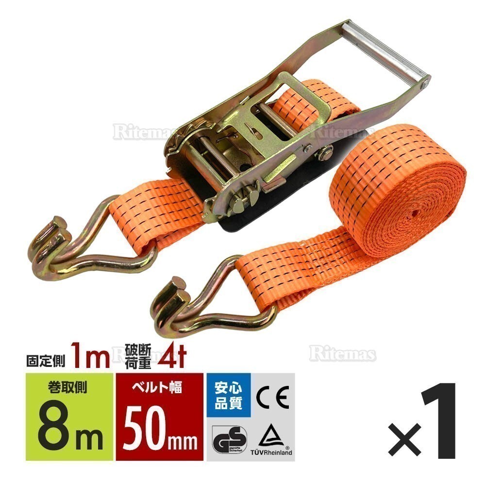 > ラッシングベルト フック トラック 幅 50mm ラチェットベルト ラチェット式 固定側1m 巻側8m 荷重4000kg タイダウンベルト 1本set 1年保証