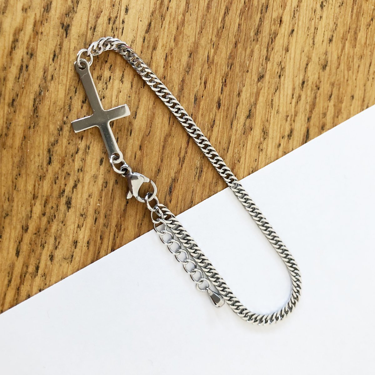 - ステンレスブレスレット 十字架 クロスチャームブレスレット 約21cm(18+3cmアジャスター) SAC05