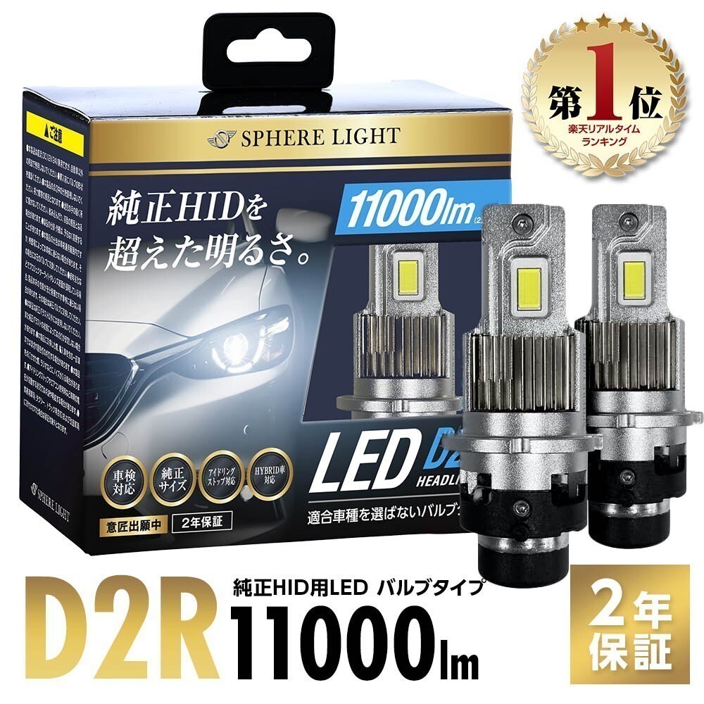 - スフィアライト 純正HID用 LEDヘッドライト D2R 6000K 11000lm(2灯合計値) 12V/24V兼用 車検対応 簡単取付 2年保証 SPHERELIGHT SLGAD2R060