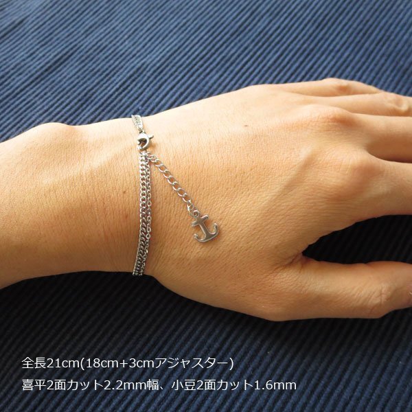 - ステンレスチェーンブレスレット 2連 SB39 全長約20cm(17+3cmアジャスター)