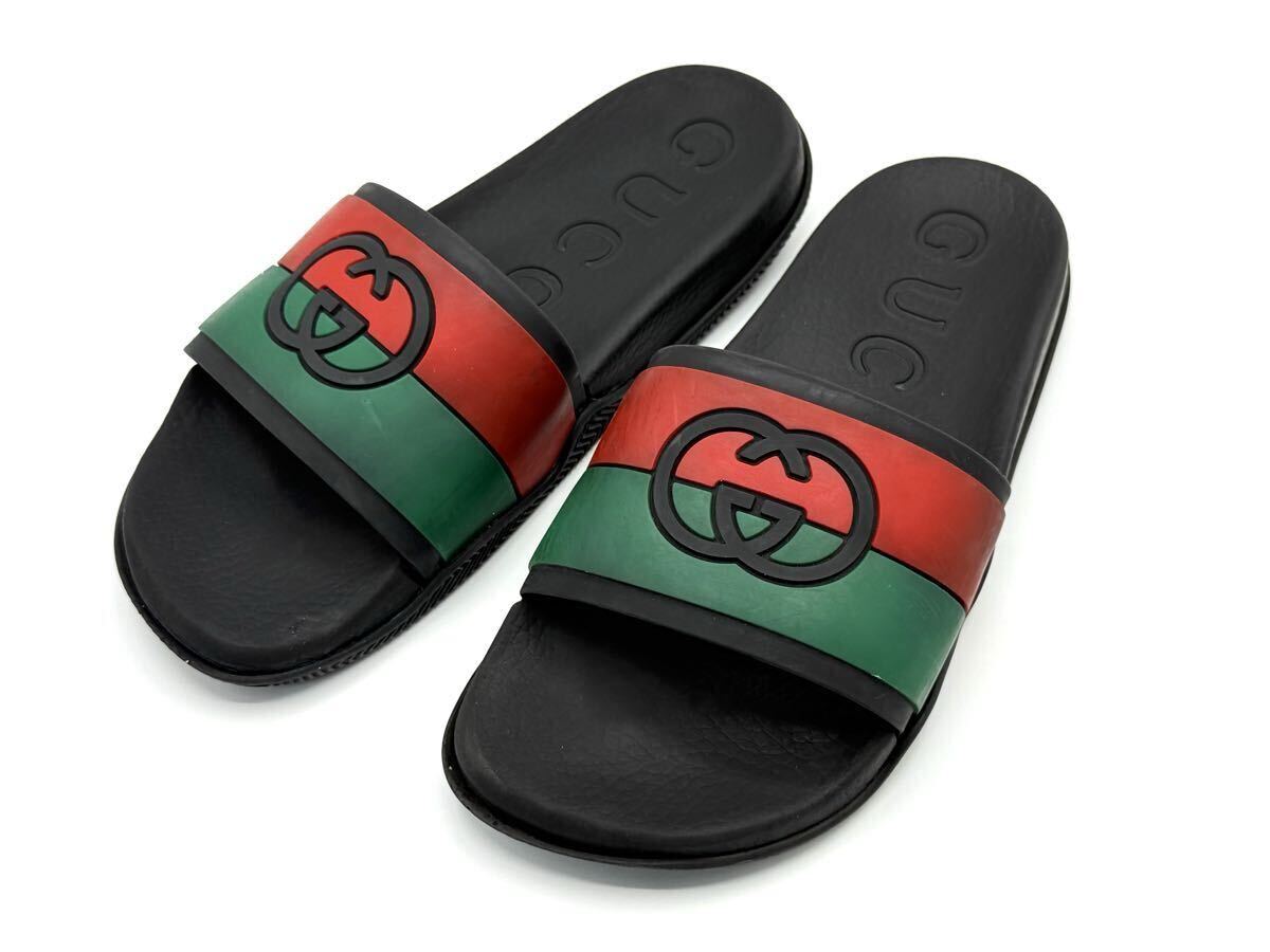 > 美品 ブラック シェリーライン ラバー スライド インターロッキングG シャワー GUCCI グッチ サンダル 655265 160 サイズ8