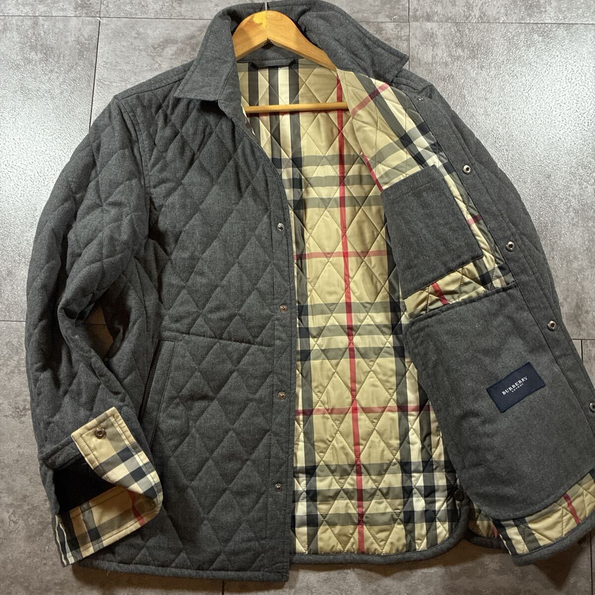 - 【美品・L相当】BURBERRY LONDON バーバリーロンドン キルティングジャケット ダイヤモンドキルト グレー ノバチェック アウター ブルゾン