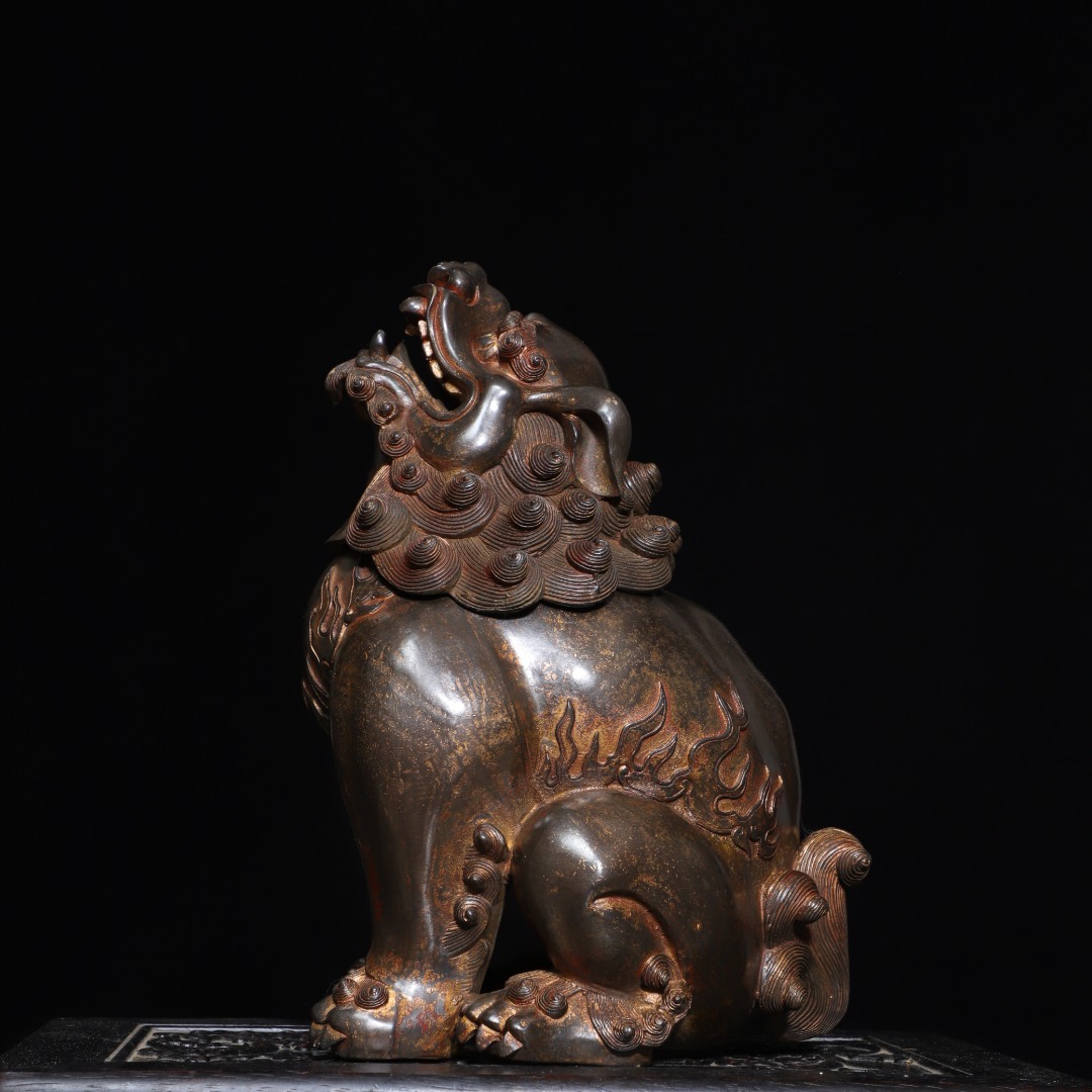 - ◆珍蔵◆中国古美術 清時代 古銅製 拓金 獅子薰炉 細密細工造 置物 擺件 古賞物 骨董品 時代物 A01