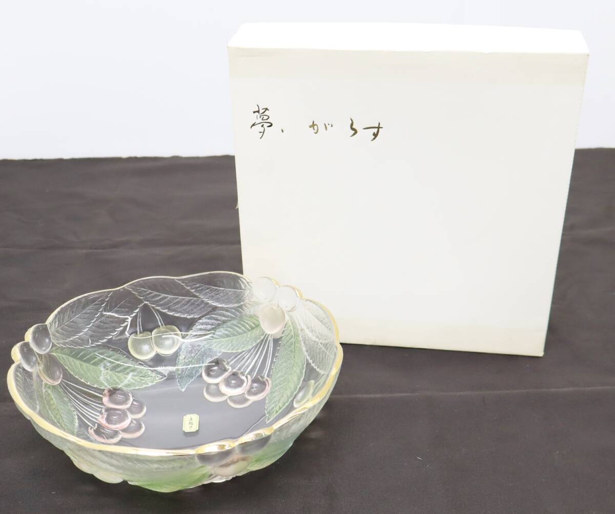 ◆和食器 |盛鉢 皿 お皿|夢がらす K-213 ガラス製|チェリー柄 さくらんぼ 箱付き■O5343の出品です!