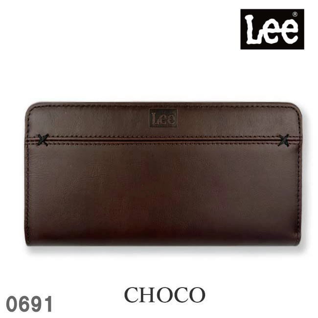 - チョコ Lee リー クロスステッチ ラウンド 長財布 リアルレザー0691