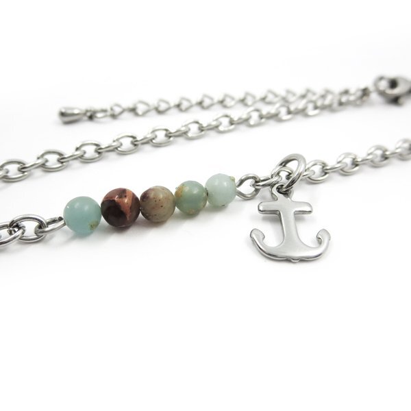 - ステンレスチェーンアンクレット スネークスキン 約4mm玉 チャーム付き 3mm幅小豆チェーン 26cm(22cm+4cmアジャスター)
