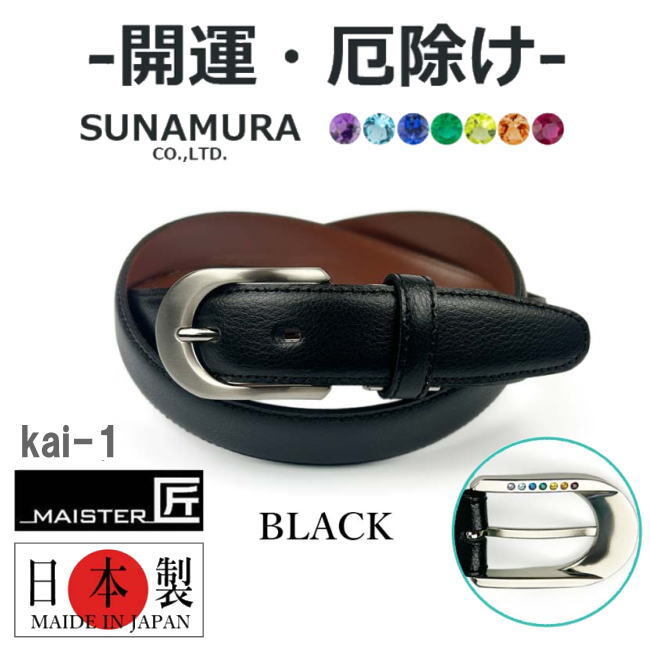 - ブラック 開運 厄除け 7色の物 MAISTER匠 日本製 本革 ベルト シボあり 幅3 kai-1