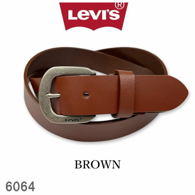 - ブラウン リーバイス リアルレザー プレーン 6064 Lサイズ ウエスト 大き目 ベルト