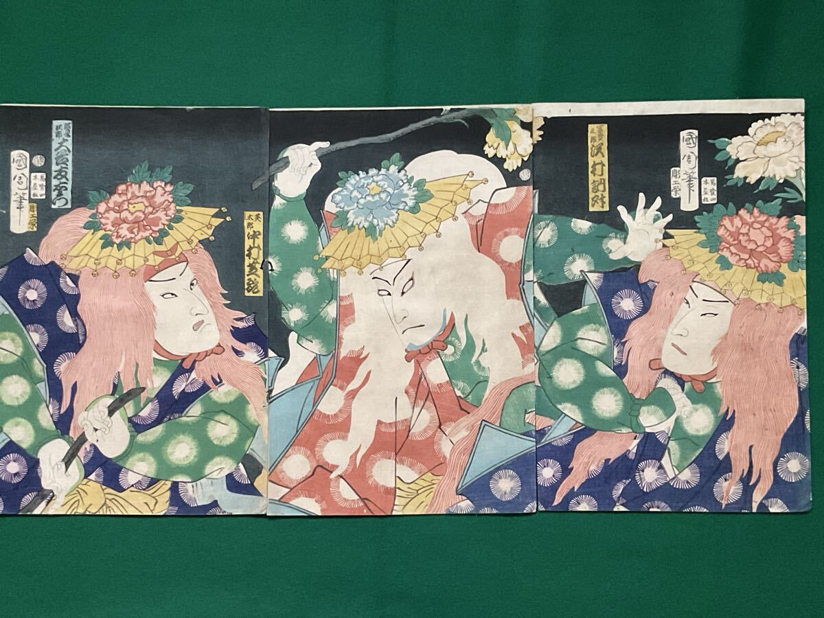 - 【 真作】★国周《和漢竺爼上灯篭》★浮世絵★ 錦絵★ 大判★3枚揃い