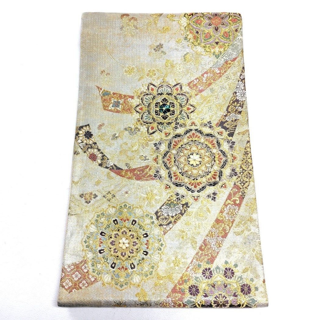 - 帯39 やまと誂製 螺鈿 高級 正絹 六通 袋帯 華文 花文 adjkpkc