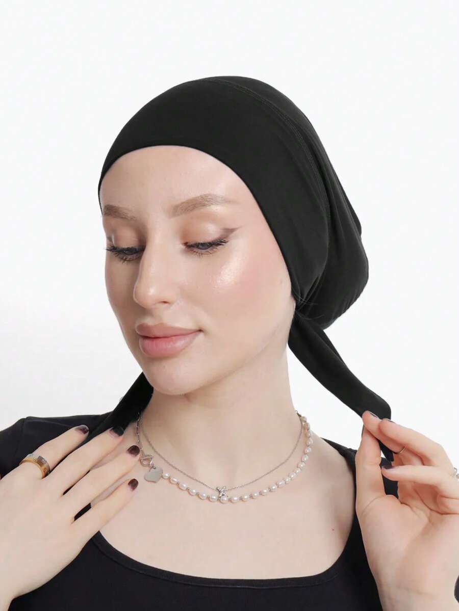 - アクセサリー レディース スカーフ 1個 無地ヒジャブ、シンプルでファッショナブル、ソフトで快適な絞り紐付きターバン型ヒジャブキャ
