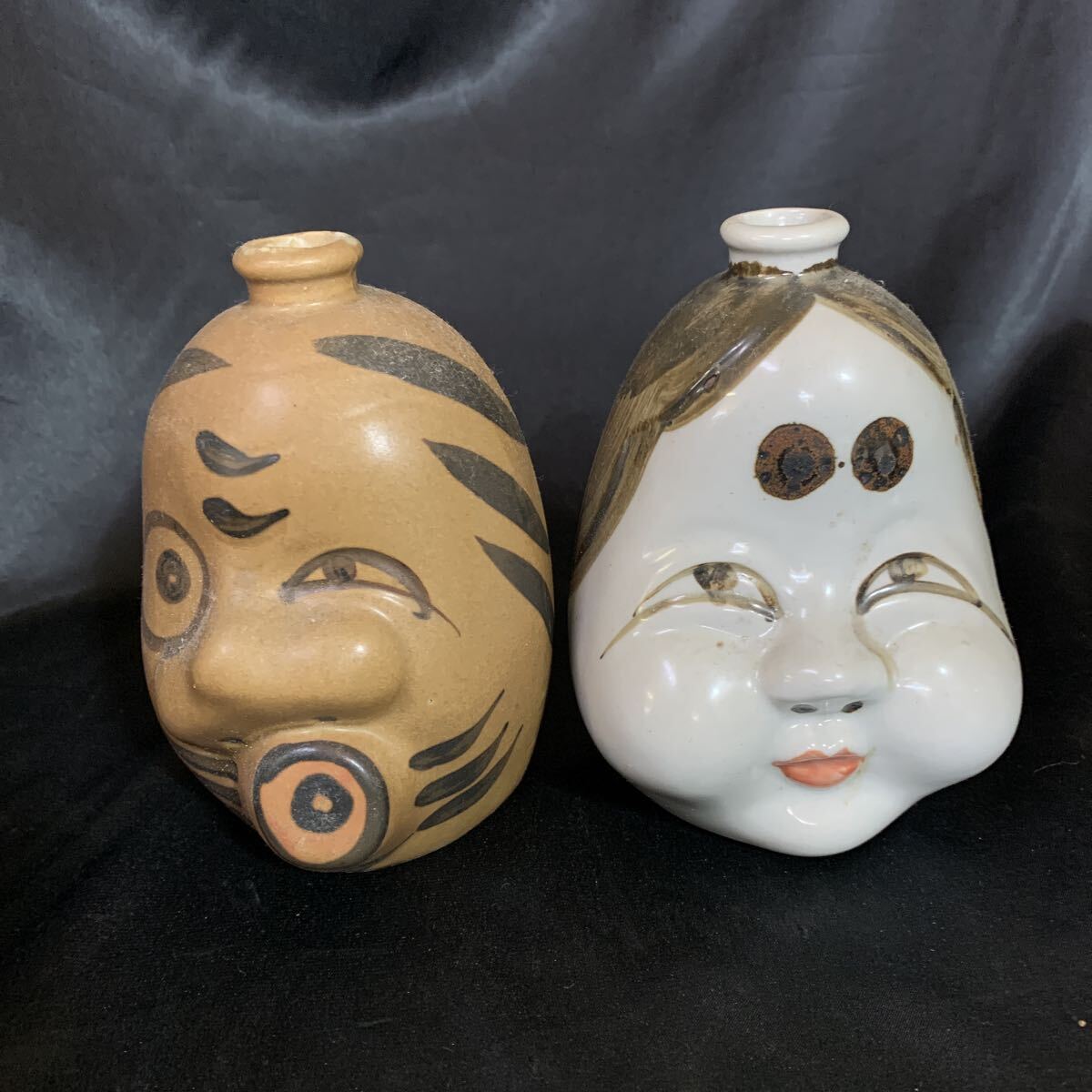 - 【とっくり】酒瓶◇陶器◇ ひょっとこ◇ おかめ◇ インテリア◇ 縁起物