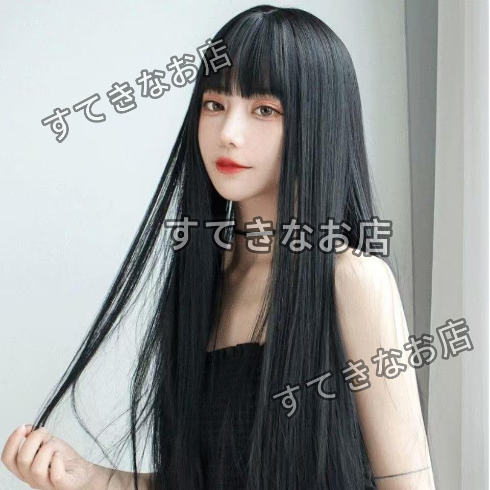 - 店長特選★人毛ウィッグ 韓国風ロングストレート ネット付き 自然 サラサラ