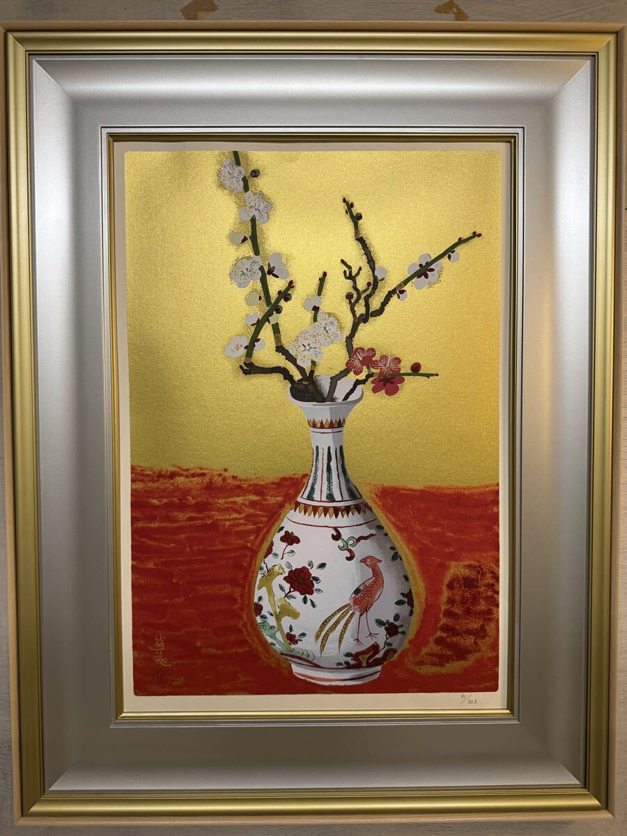- 真作 小倉遊亀 『 梅 』 シルクスクリーン 12号 共シール 額装 絵画版画 日本画 紅梅