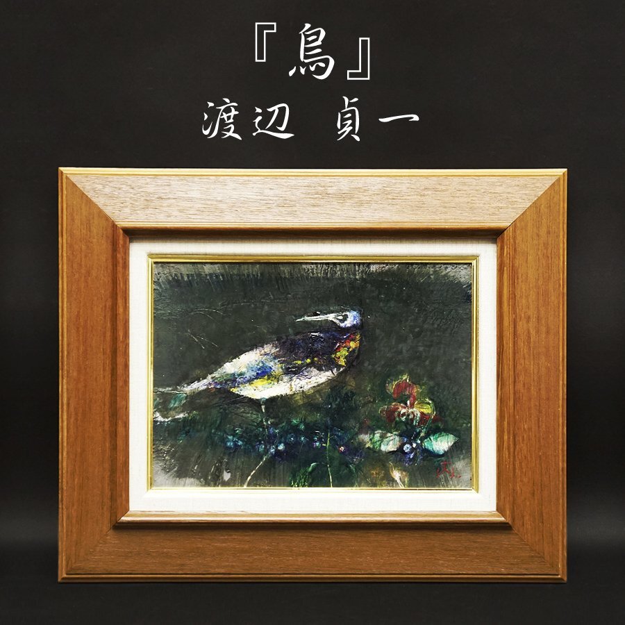 - 渡辺貞一『鳥』4号 国図会会員 油彩 油絵 原画 直筆 動物画 絵画 額装 美術 芸術 アート 裏書サイン有 古美術品 真作保証品