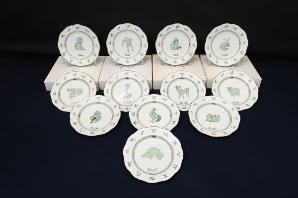 - 11066■ 新品未使用 Herend ヘレンド イヤープレート 干支シリーズ 十二支 1996~2007年 箱有